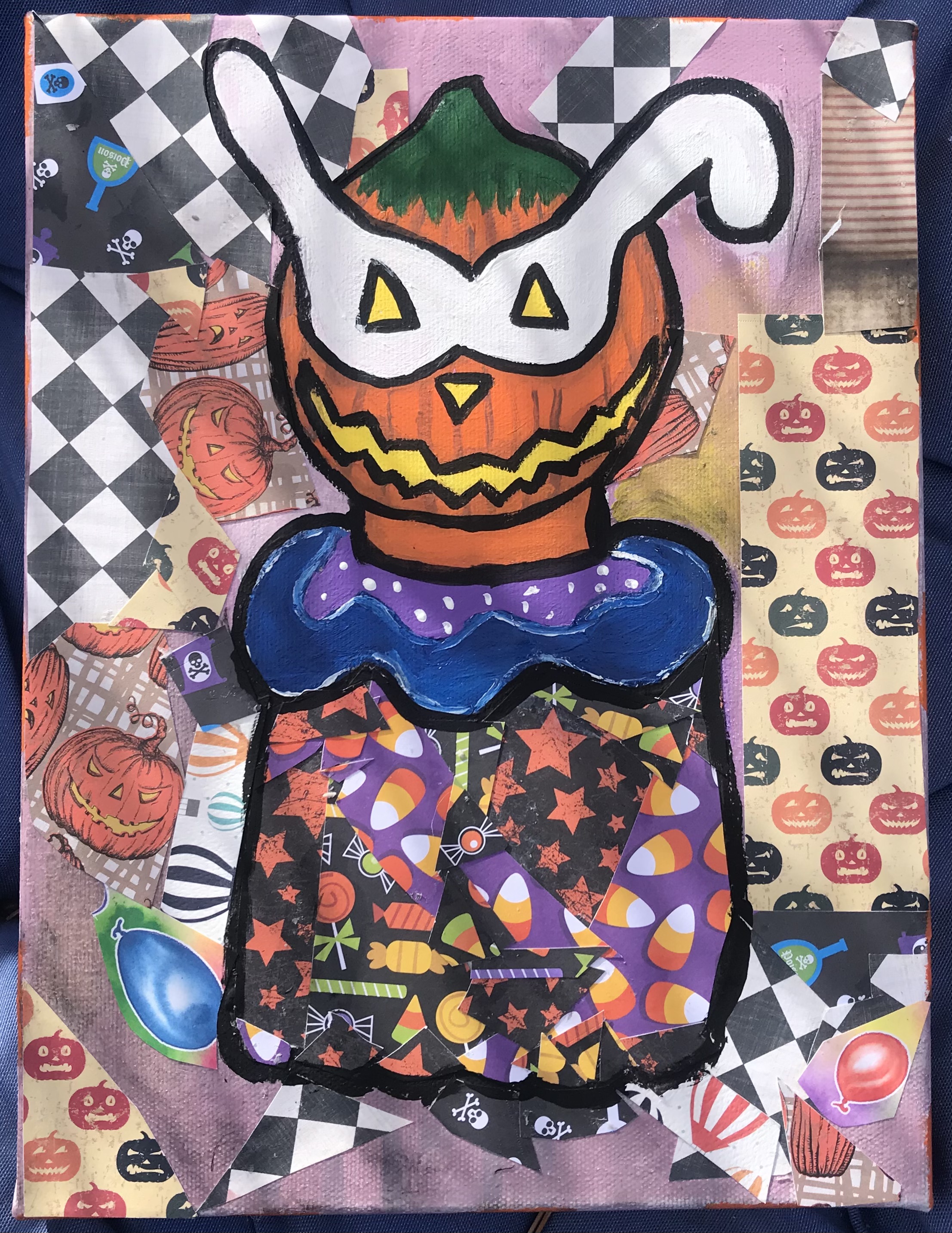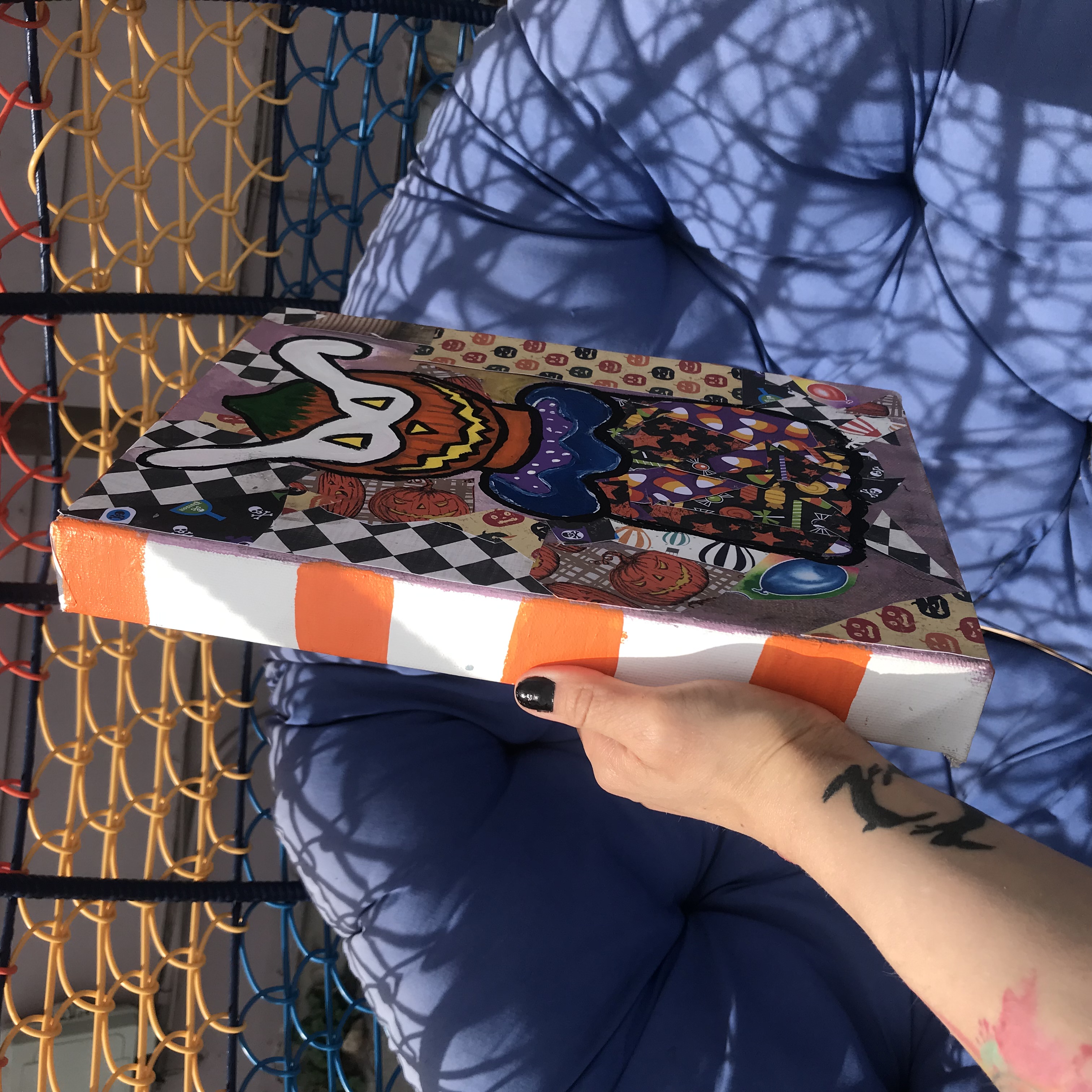 This painting was....an experience. It did not go in the direction I anticipated and I almost scrapped it completely! But in the end, I actually quite like how it turned out. It's like a demented Halloween carnival vibe. It's unexpectedly messy and grungey and I'm kinda in love with that!