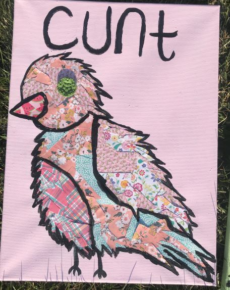 These colorful bird paintings from 2018 are sassy and super foul-mouthed! I used a lot of similar paper and design choices between the two of them so they could look cohesive together! I'd really love for them to stay together rather than fly apart.