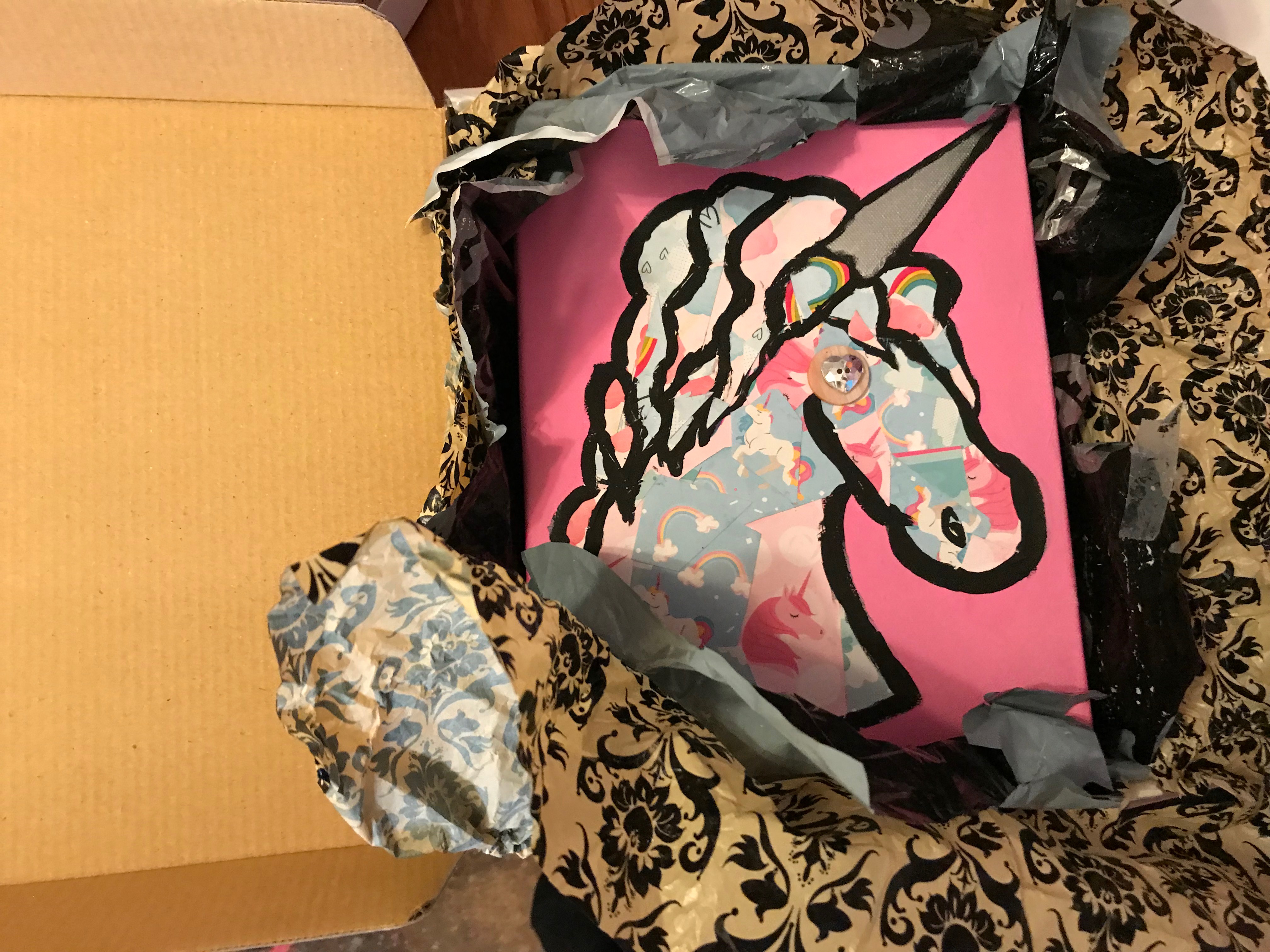 She is already packaged up and ready to go! Includes unicorn stickers with purchase!