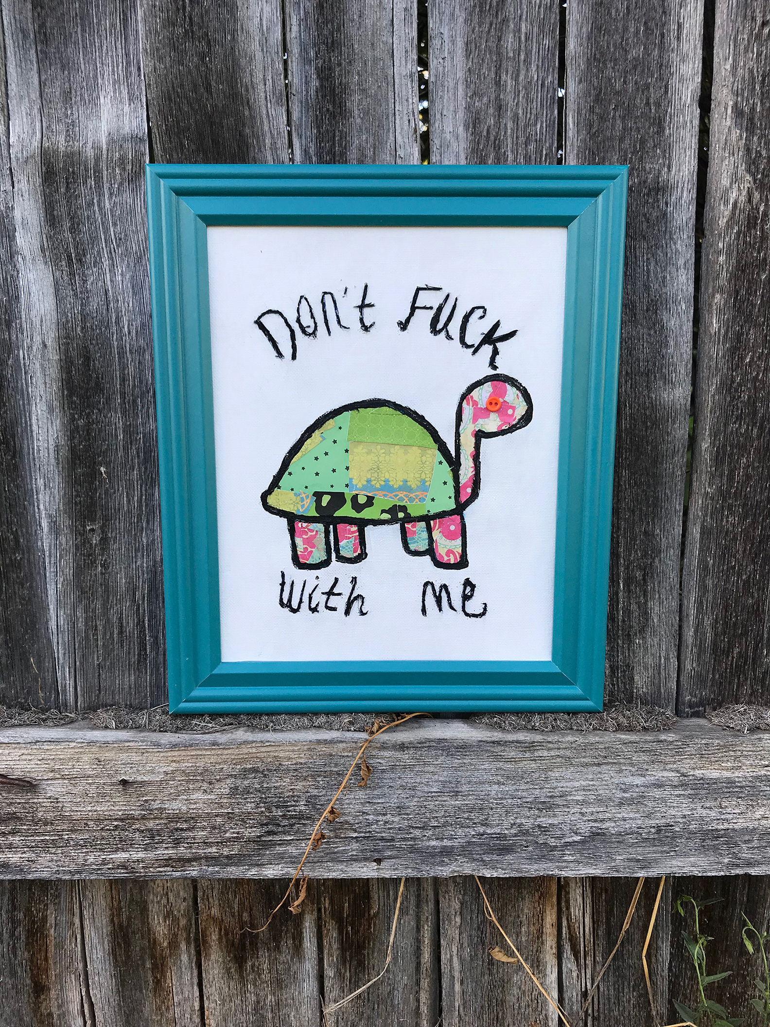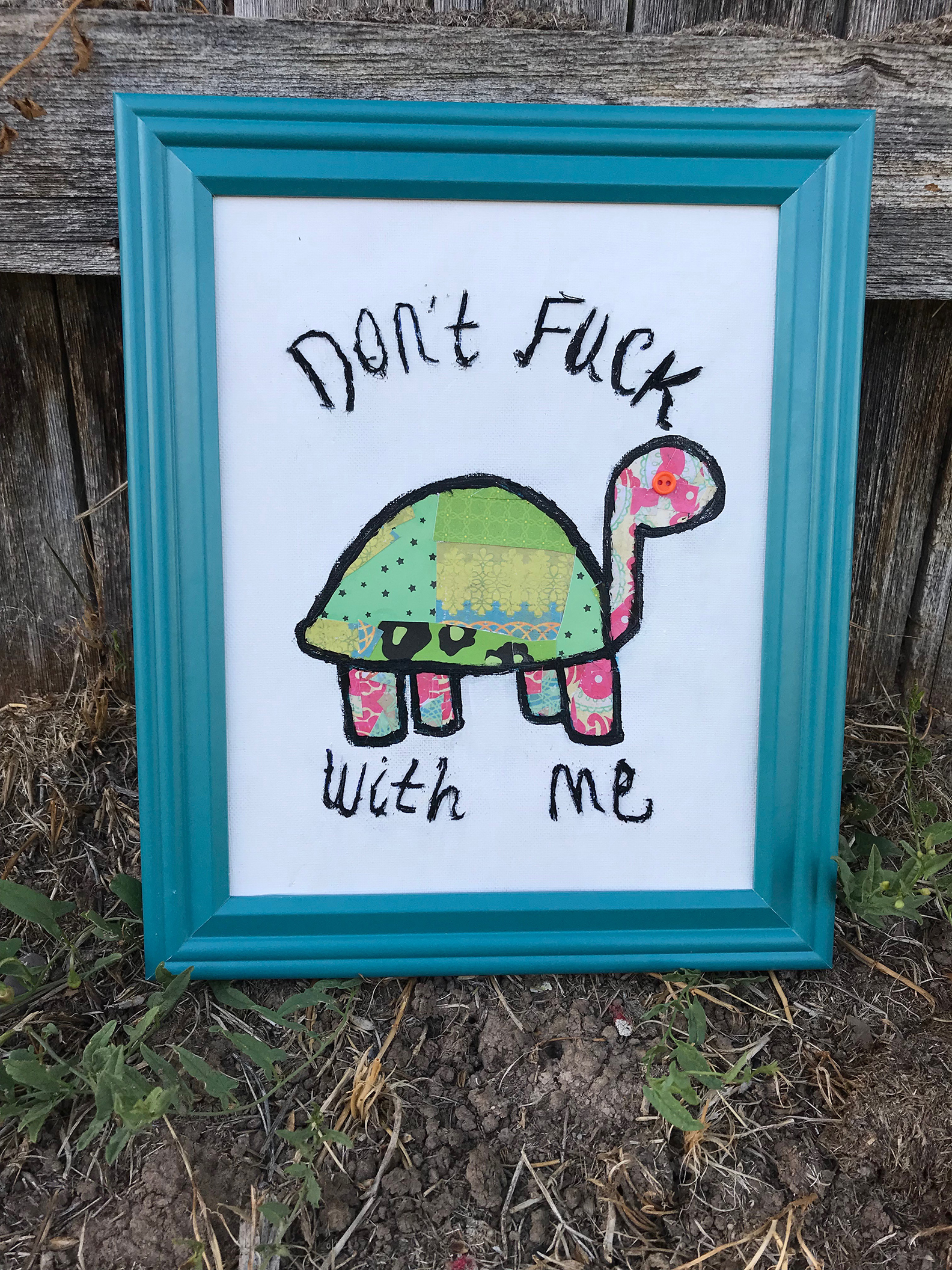 Cute little turtle with embroidery that says "Don't Fuck With Me."