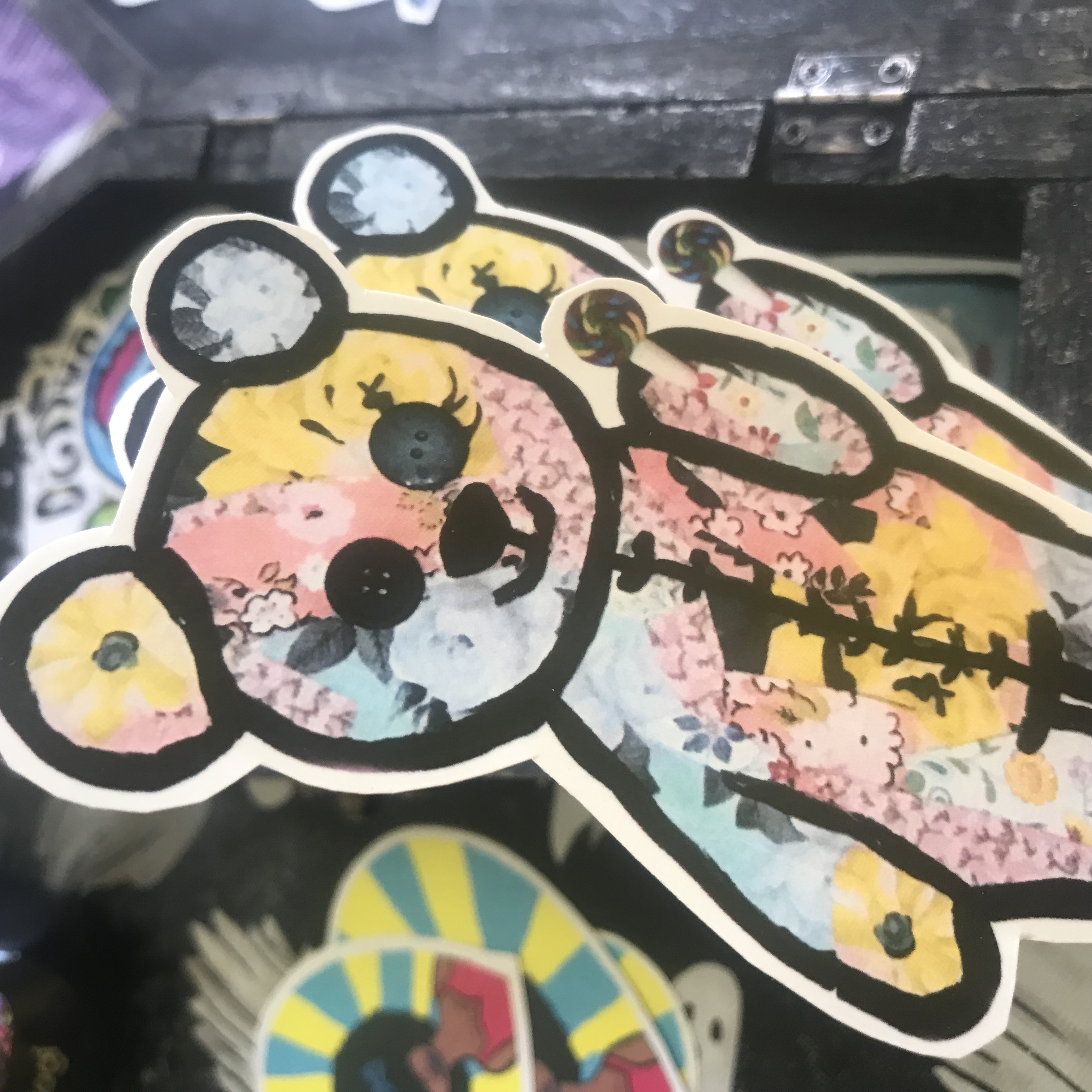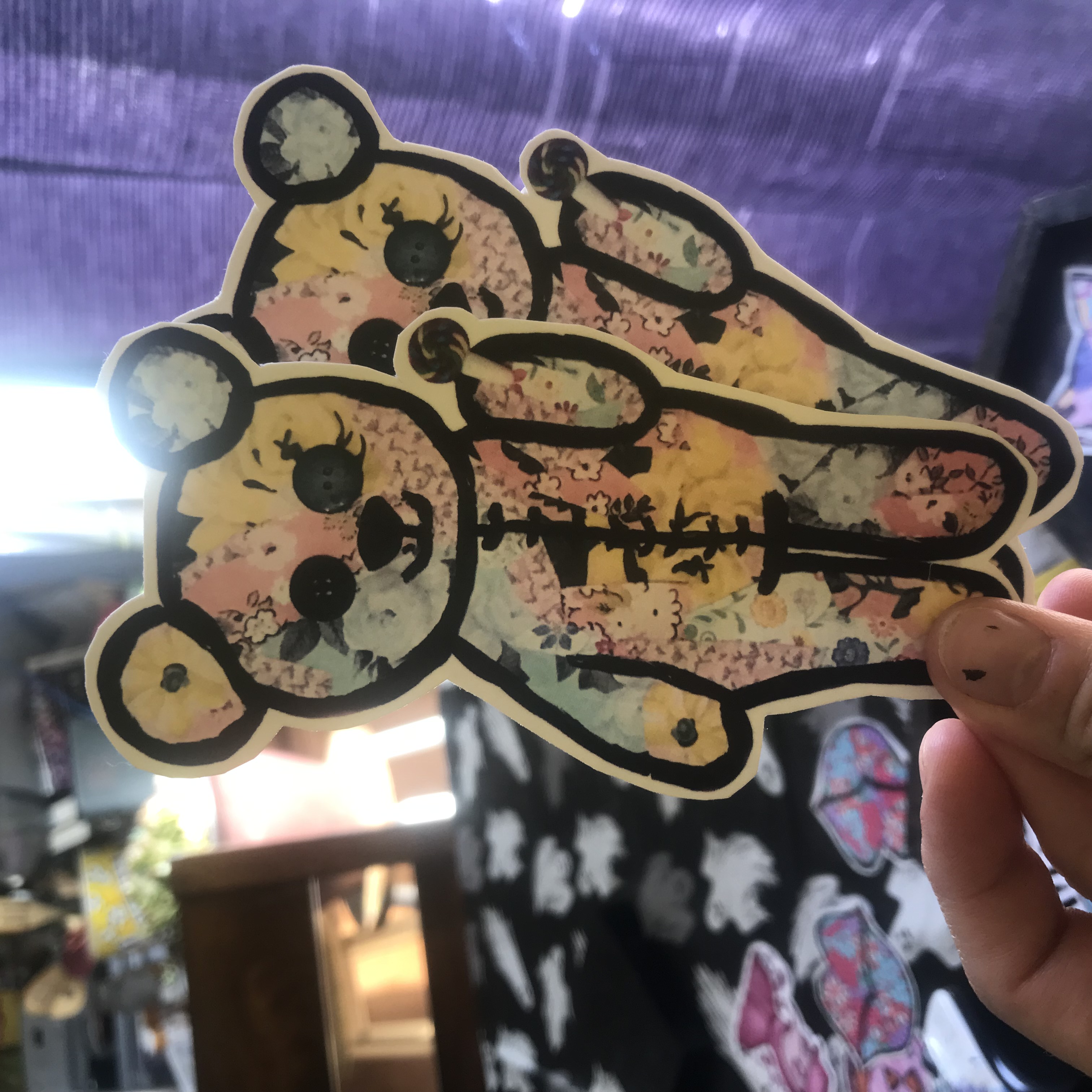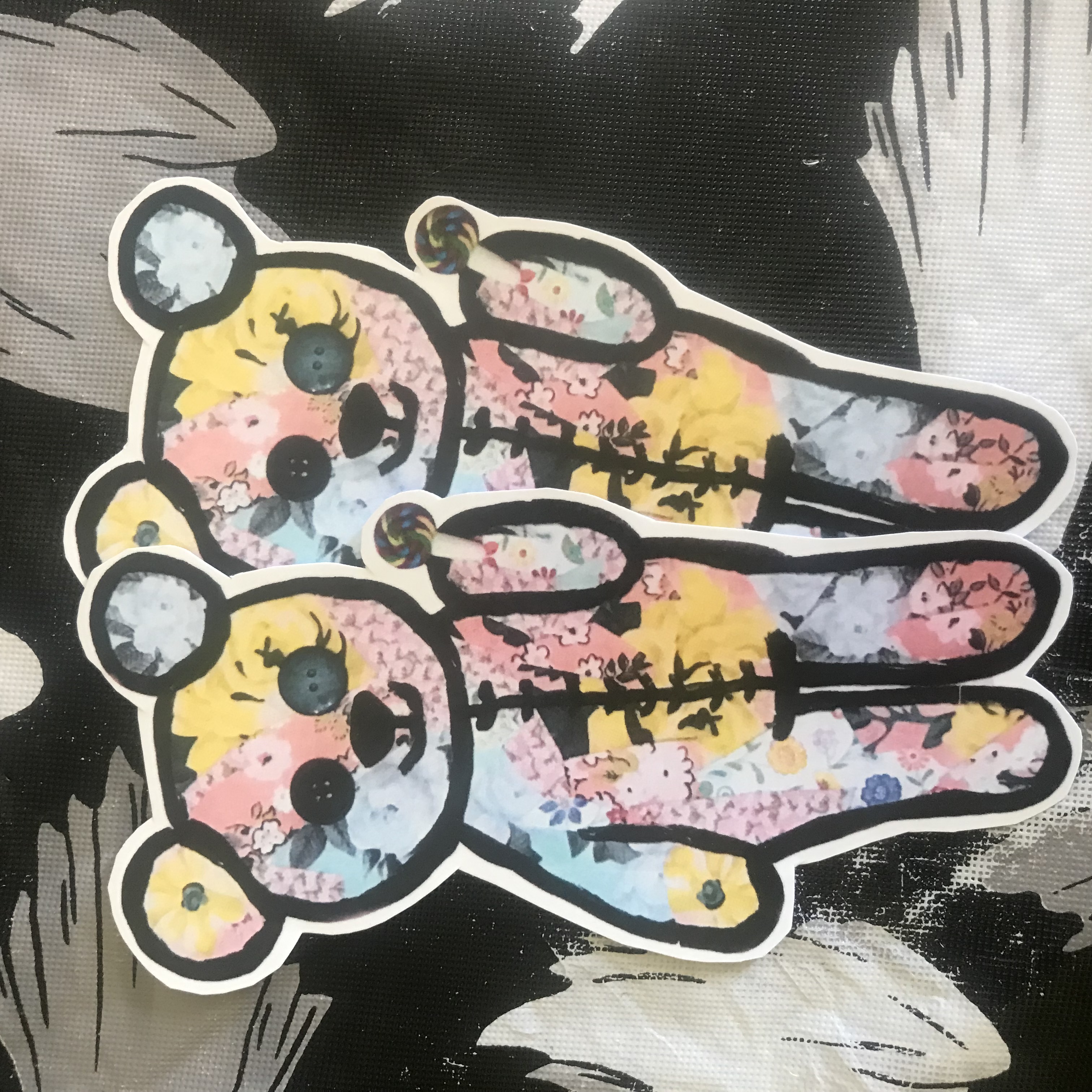 My adorable pastel grunge teddy bear sticker is now printed on vinyl adhesive sticker paper! There are two available and they measure about 5 inches from the top of the ear to the bottom of the foot and over 2 inches across. These cute stickers are printed on vinyl so they should be more durable than my other stickers but you can still buy those teddy slaps for a little cheaper.