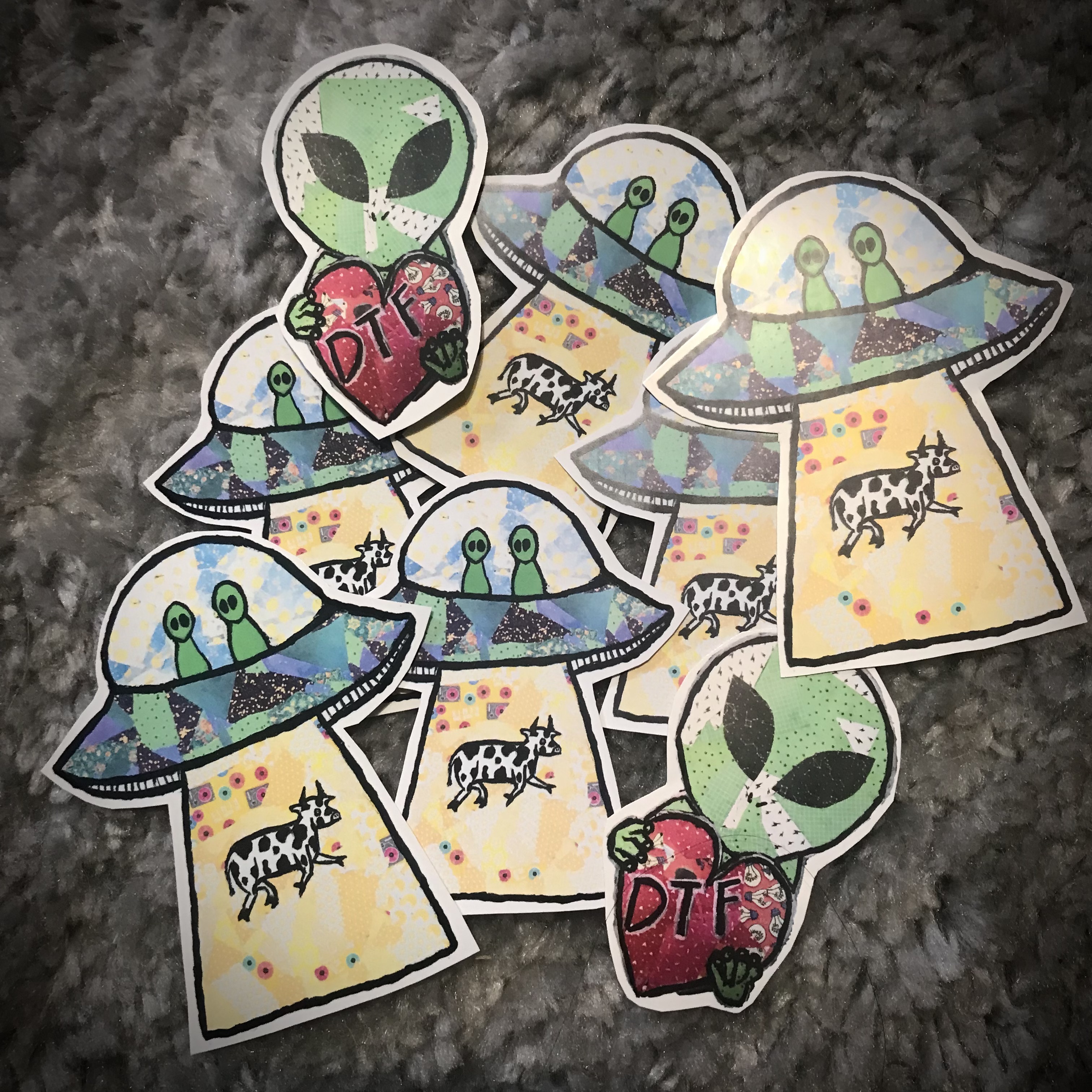 Decided to make another small batch of my beloved DTF alien stickers. They're cut out by hand and printed on vinyl adhesive sticker paper.