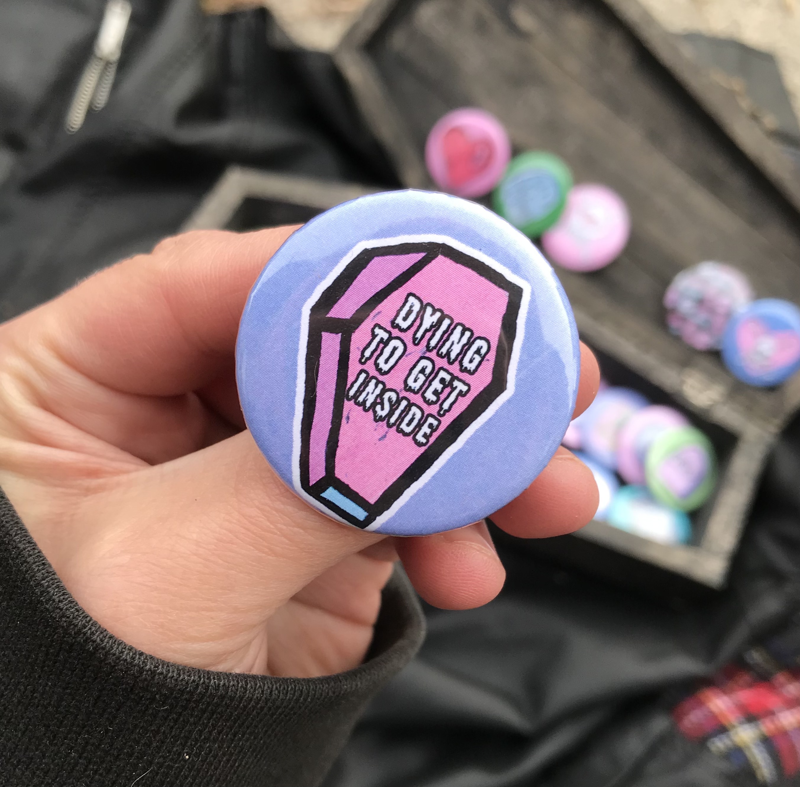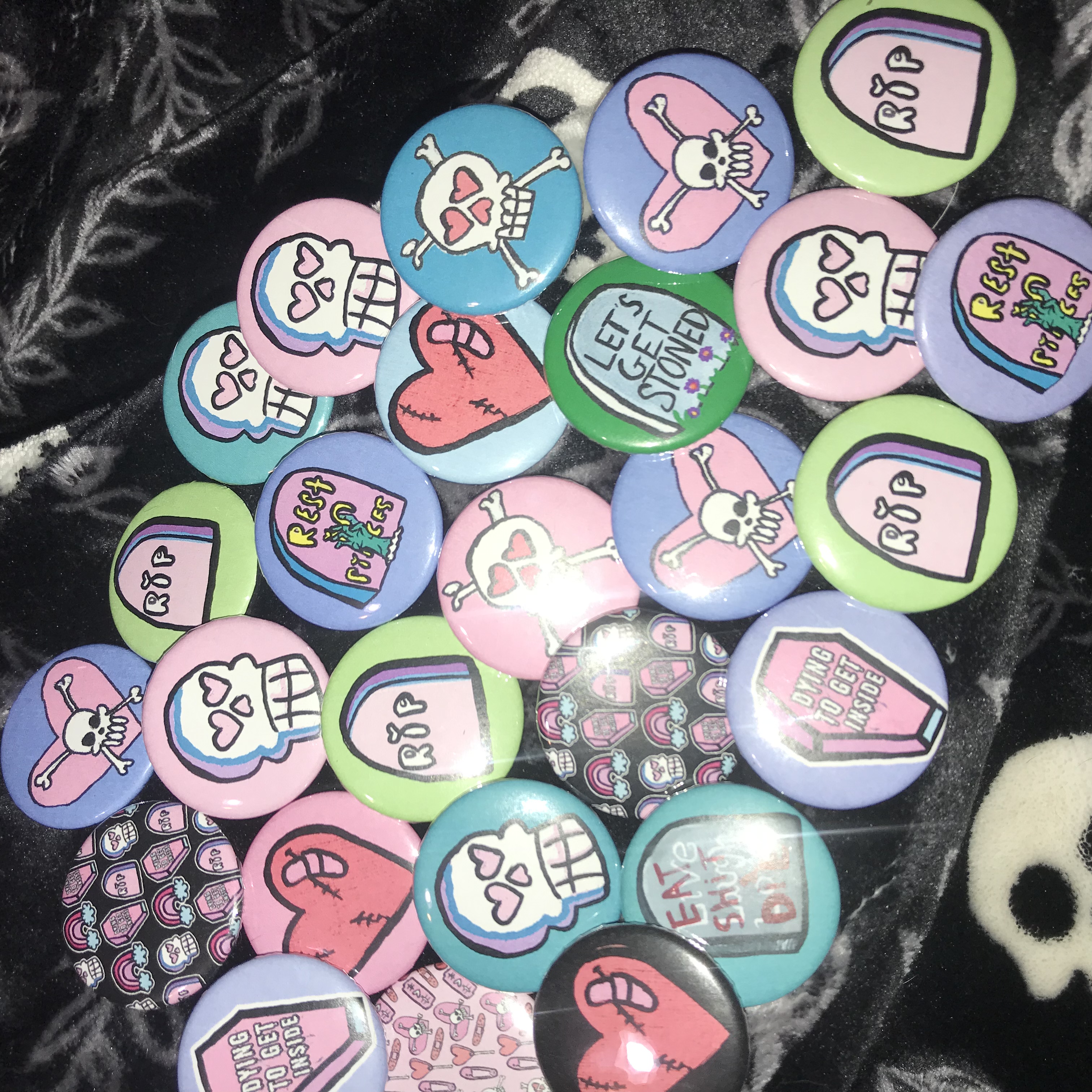 These 1.5 inch buttons are high-quality and handmade using a Tecre button maker. I have more than 10 designs available all using my original designs with more to come!