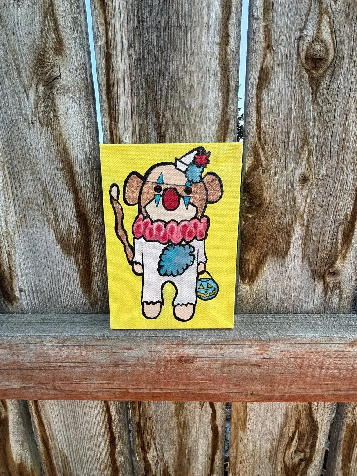 This sock monkey is all dressed up for his big night out: trick or treating with his friends! Based on a drawing I did in 2024, I tried so many times to get this guy just right! While he takes the longest to get ready, he is always down to clown, and his shenanigans go hard. He is the second in the "Stuffed Animals Dressed as Trick or Treaters" series, when I realized Teddy Bear Princess was lonley and in need of a buddy. It's cold and scary out there, so you can't go out alone!